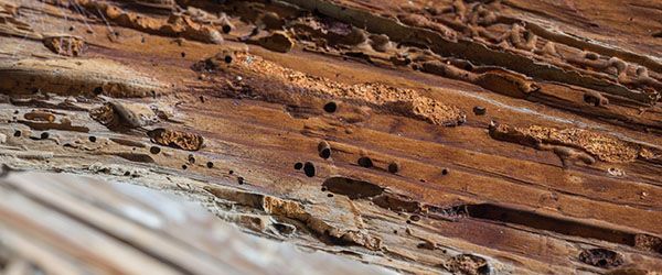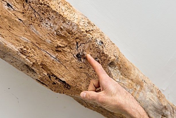 Dans une maison rénovée touchée par les termites, on trouve de petits trous noirs avec un peu de terre au niveau des parties en bois. Et lorsqu’on enlève les plinthes, des galeries sont visibles et le bois est complètement déstructuré.
