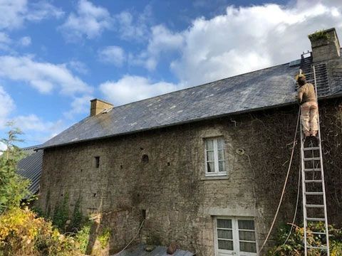 Le "démoussage de toiture" est un processus consistant à éliminer les mousses, les algues, les lichens et autres dépôts végétaux qui peuvent se développer sur la surface d'un toit. Ces organismes peuvent se développer dans des environnements humides et ombragés, en particulier sur les toits recouverts de tuiles, d'ardoises ou de bardeaux.